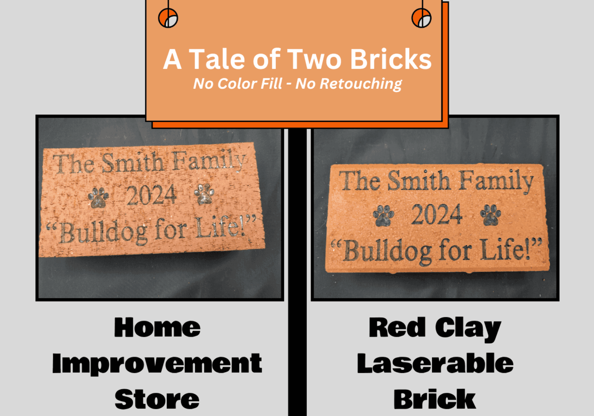 Red Clay Bricks are favored for memorials and fundraising campaigns. Using CO2 lasers, we engrave your designs into the red clay, producing a striking contrast that highlights every detail. The high temperatures of the laser creates not only a visually stunning effect but ensures engravings are permanently embedded into the brick. This ensures durability and weather resistance, preserving the quality and appearance of the brick over time.