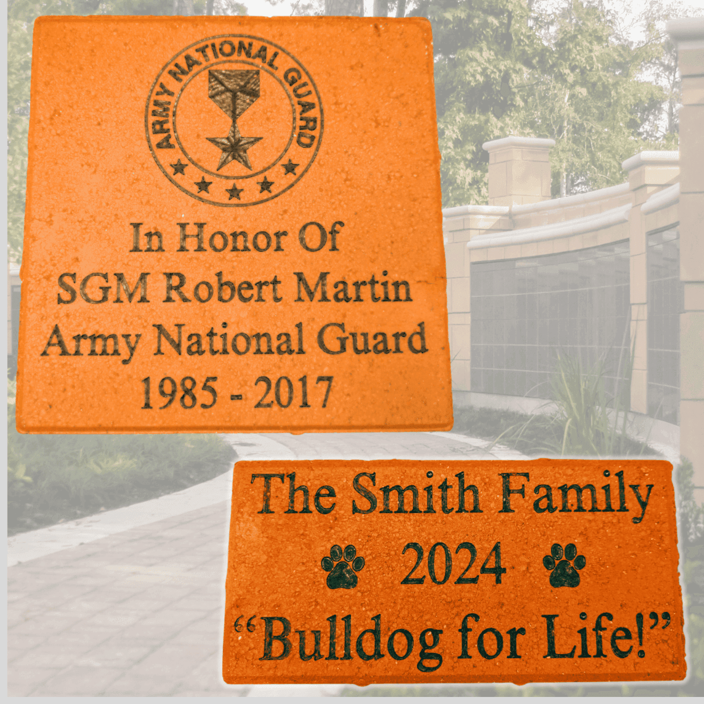 Our Mini Bricks (3" x 3" x 5/8") and Brick Veneers (4" x 8" x 9/16" thickness) are perfect for indoor decor, gifting, or as meaningful replicas of memorial or fundraising bricks. Each engraving reflects our commitment to beauty and sustainability. A variety of Clip Art and Monogram styles are available at checkout to complete your design.